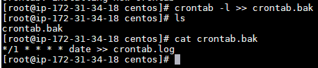 앞에서 살펴본 것처럼 crontab에는 백업 기능이 없습니다. 리눅스의 표준 출력 기능을 통해 현재 crontab의 내용을 파일에 기록할 수 있습니다. 👍 (아래에서는 그냥 crontab.bak으로 기록하지만 특정 폴더를 잘 정의해야 합니다.)
